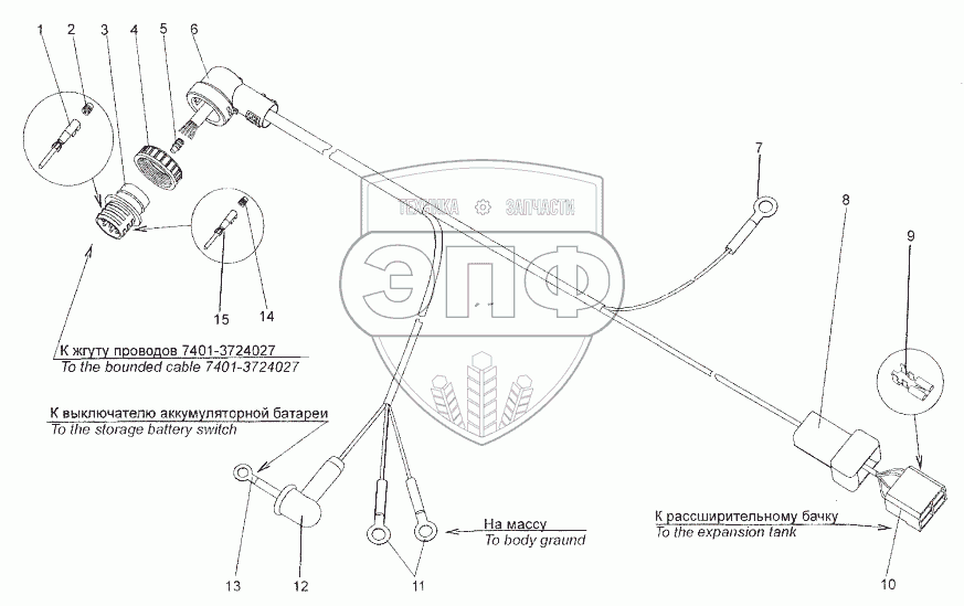 Каталог запасных частей к технике: МЗКТ-93782. Жгут проводов 692374-3724588-11