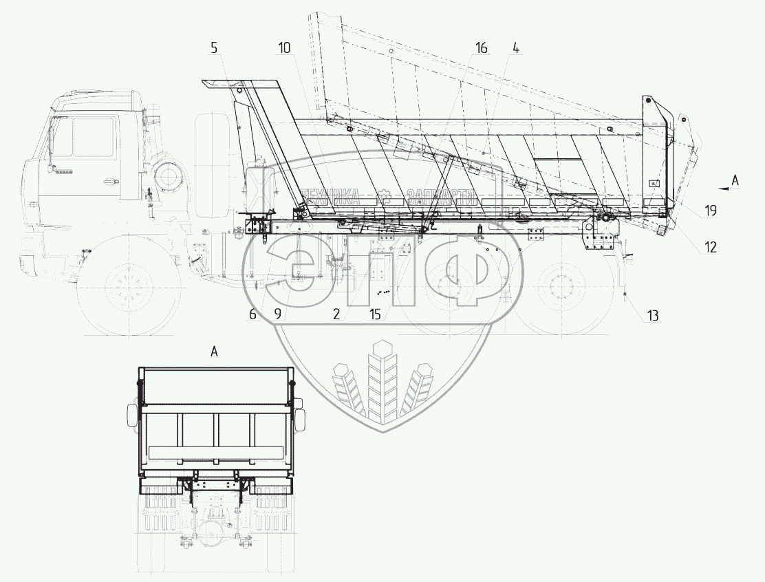 Каталог запасных частей к технике: Нефтекамский автозавод 65222-8600052. 65222-8600052 Самосвальная установка