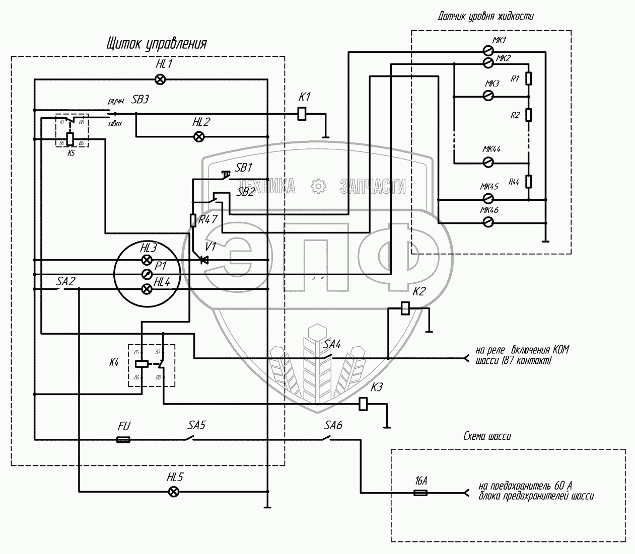 Каталог запасных частей к технике: Нефтекамский автозавод 66062. 2Э66061-3729011Э3 Схема электрическая принципиальная