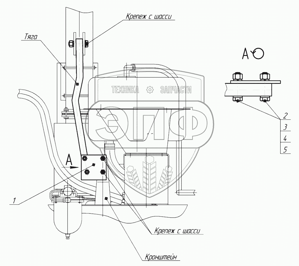 Каталог запасных частей к технике: Нефтекамский автозавод 66062. 53228-2801010 Переустановка тяги глушителя
