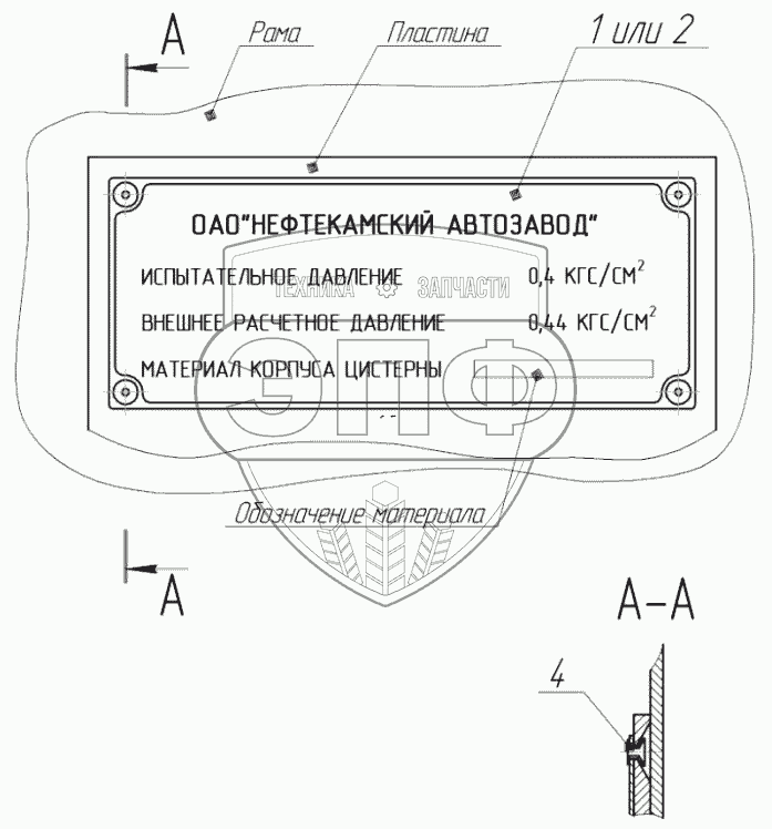 Каталог запасных частей к технике: Нефтекамский автозавод 66062. 96895-8513483 Установка таблички испытания