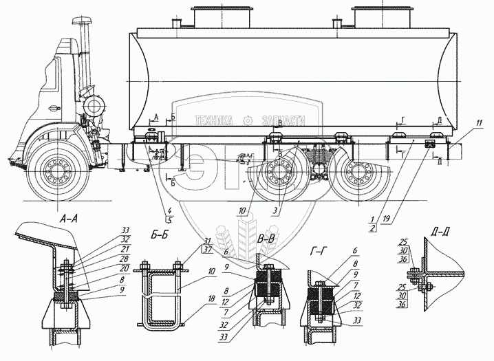 Каталог запасных частей к технике: Нефтекамский автозавод 6606. 66052-02-8516000 Установка цистерны