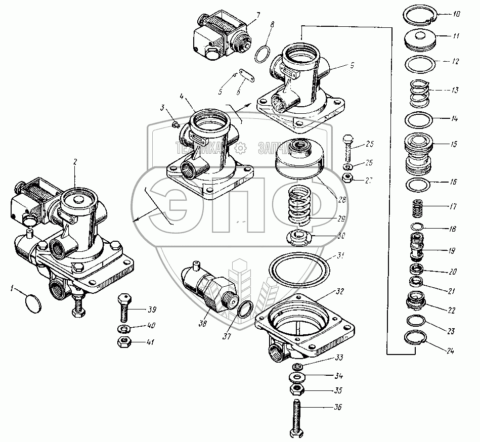 Каталог запасных частей к технике: Нефтекамский автозавод 8527. Клапан электропневматический