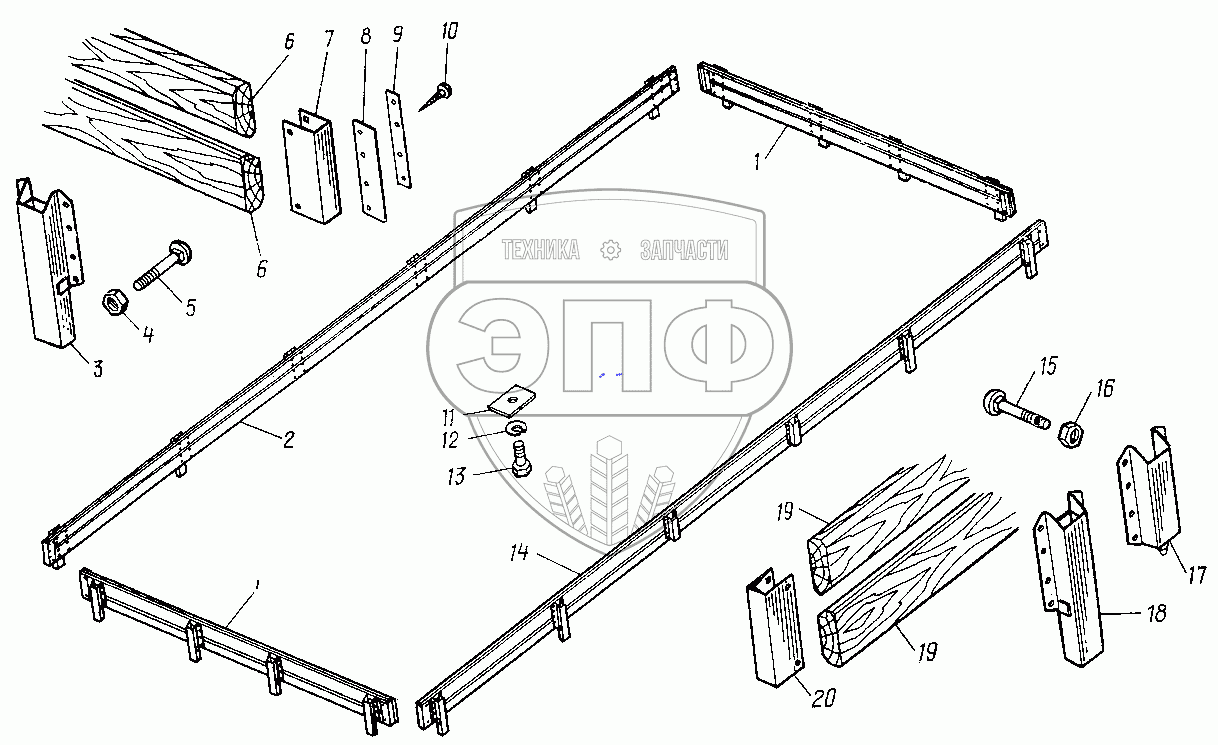 Каталог запасных частей к технике: Нефтекамский автозавод 8527. Надставные деревянные борта