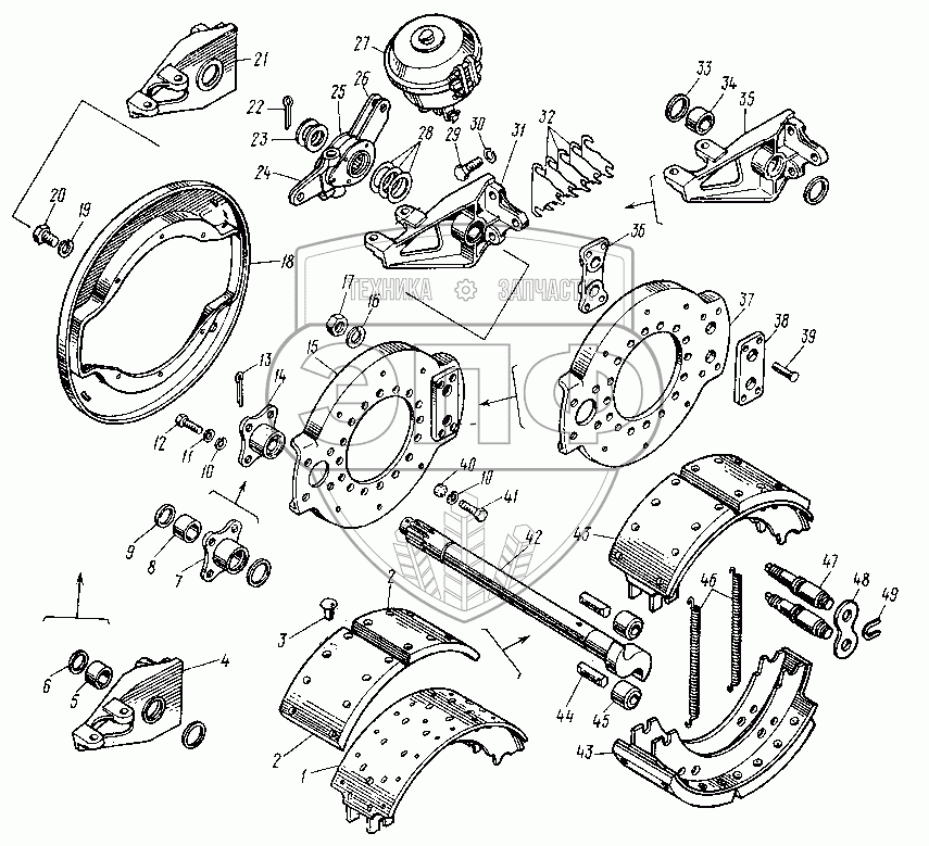 Каталог запасных частей к технике: Нефтекамский автозавод 8527. Тормоза рабочие задней оси