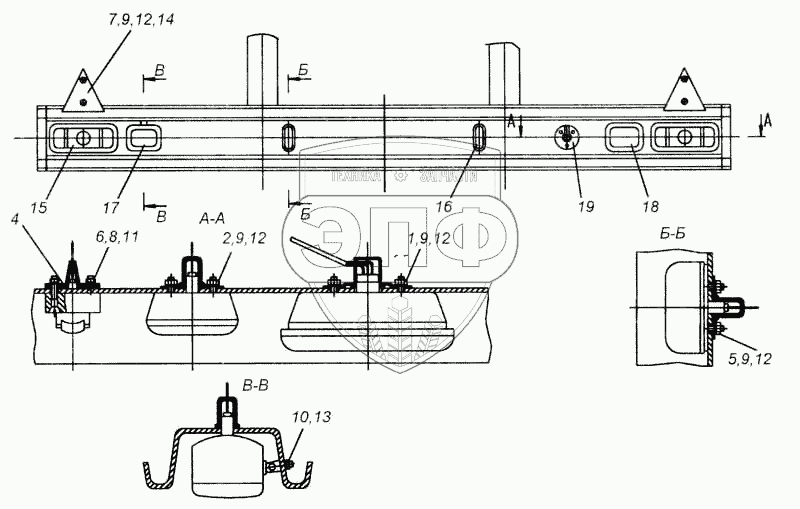 Каталог запасных частей к технике: Нефтекамский автозавод 93341. Установка задних фонарей 9334-3716010