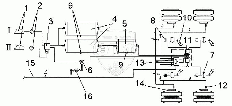 Каталог запасных частей к технике: Нефтекамский автозавод 9334. Функциональная схема АБС