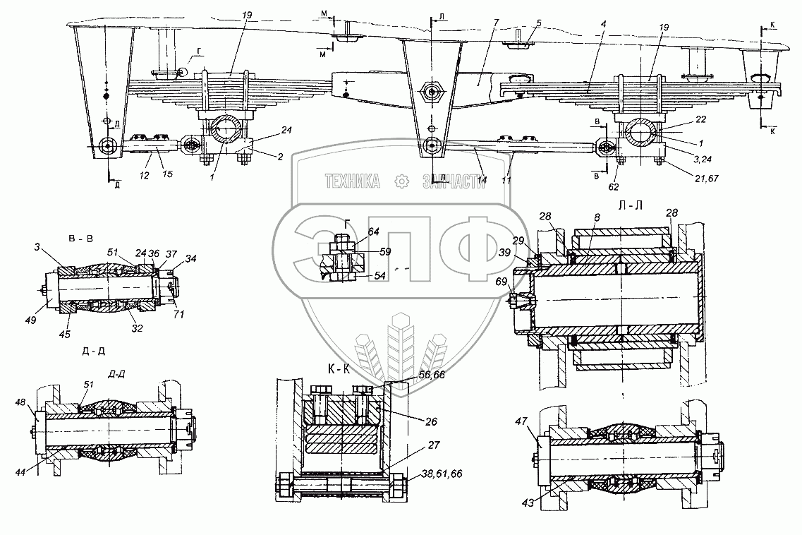 Каталог запасных частей к технике: Нефтекамский автозавод 9334. Установка подвески 9693-2900012