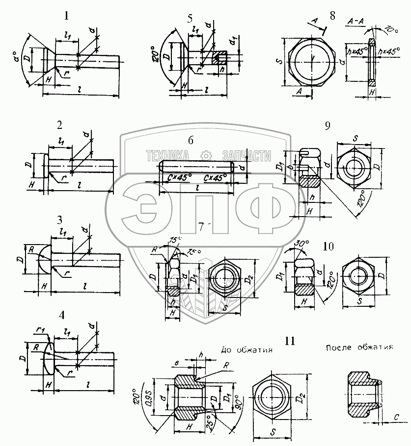 Каталог запасных частей к технике: Нефтекамский автозавод 937006/07-01. Гайки, заклепки, штифты