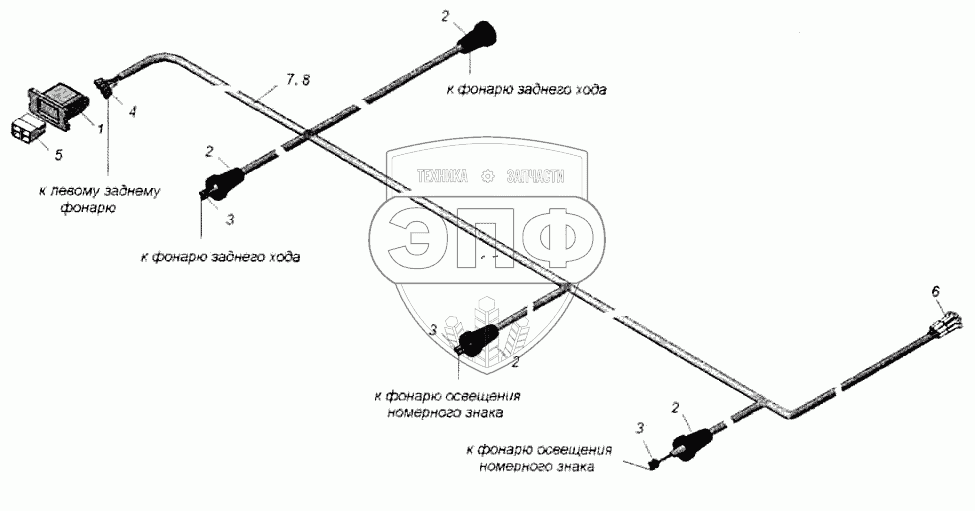 Каталог запасных частей к технике: Нефтекамский автозавод 9509. Пучок проводов задних фонарей левый