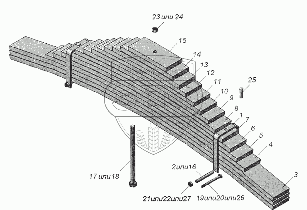 Каталог запасных частей к технике: Нефтекамский автозавод 9509. Рессора 6520-2912012-10