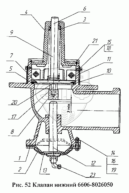 Каталог запасных частей к технике: Нефтекамский автозавод 96741. Клапан нижний 6606-8026050