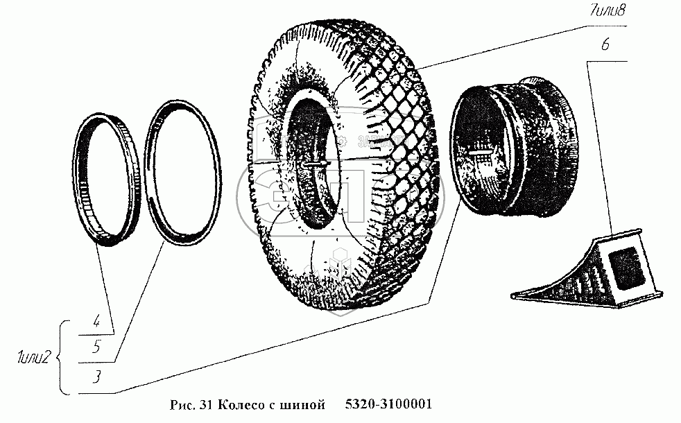 Каталог запасных частей к технике: Нефтекамский автозавод 96741. Колесо с шиной 5320-3100001