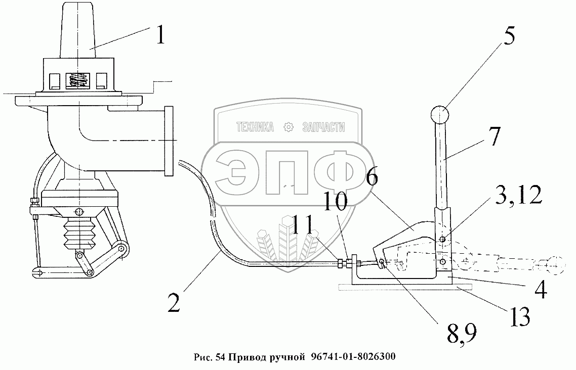 Каталог запасных частей к технике: Нефтекамский автозавод 96741. Привод ручной 96741-01-8026300
