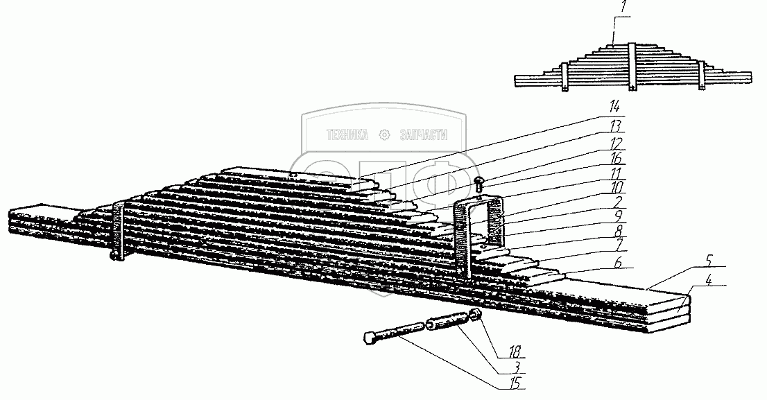 Каталог запасных частей к технике: Нефтекамский автозавод 96741. Рессора 4310-2912012
