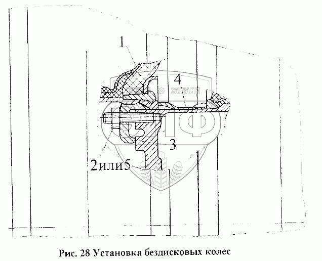 Каталог запасных частей к технике: Нефтекамский автозавод 96741. Установка бездисковых колес