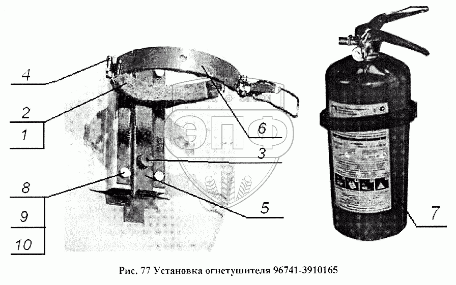 Каталог запасных частей к технике: Нефтекамский автозавод 96741. Установка огнетушителя 96741-3910165