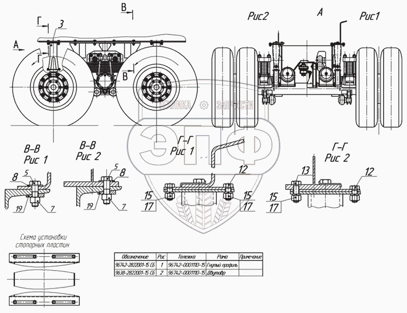 Каталог запасных частей к технике: Нефтекамский автозавод 96742. 96742-2822001-15 Установка тележки