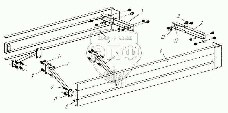 Каталог запасных частей к технике: Нефтекамский автозавод 9693. Установка боковой защиты