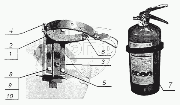 Каталог запасных частей к технике: Нефтекамский автозавод 9693. Установка огнетушителя
