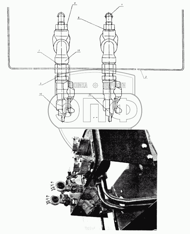 Каталог запасных частей к технике: Нефтекамский автозавод 9693. Установка соединительных головок