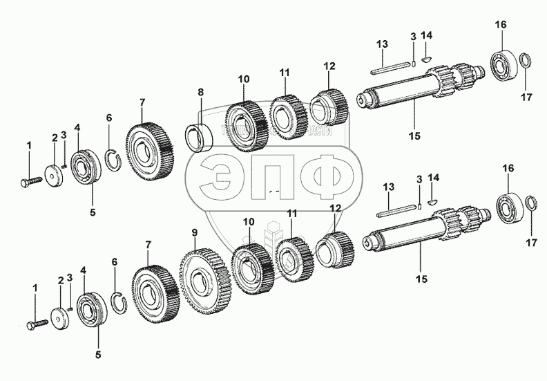 | 12 | JS150-1701051 | Шестерня первой передачи промежуточного вала | Нет на складе | |