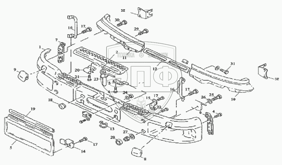 Каталог запасных частей к технике: Shaanxi DeLONG Е-3 (самосвал). Бампер и кронштейн