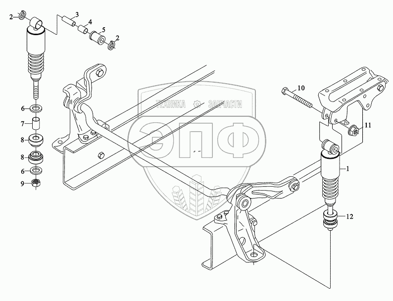 Каталог запасных частей к технике: Shaanxi DeLONG Е-3 (самосвал). Элементы передней подвески