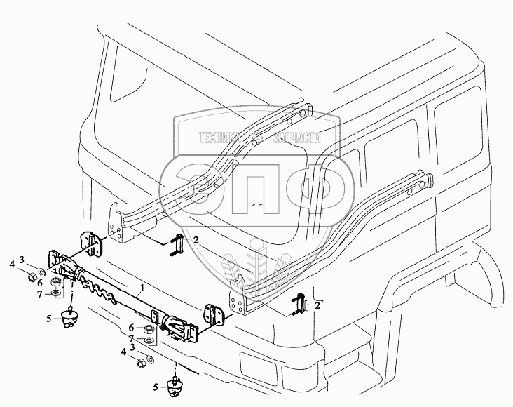 Каталог запасных частей к технике: Shaanxi DeLONG Е-3 (самосвал). Крепление кронштейна пола