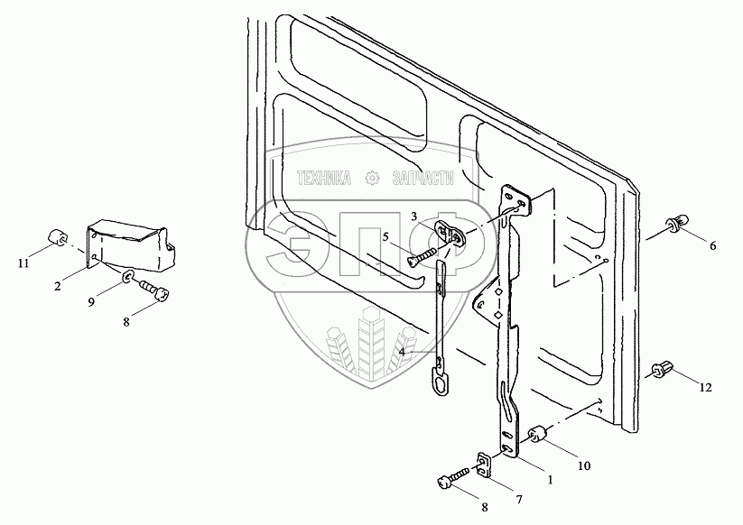 Каталог запасных частей к технике: Shaanxi DeLONG Е-3 (самосвал). Крепление спального места