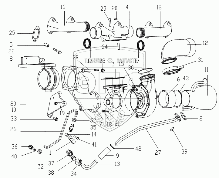 | 7 | 612630110007 | Задняя выхлопная труба нагнетателя | Нет на складе | |