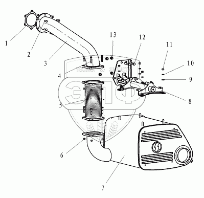 Каталог запасных частей к технике: Shaanxi DeLONG Е-3 (тягач). Газоотвод и глушитель