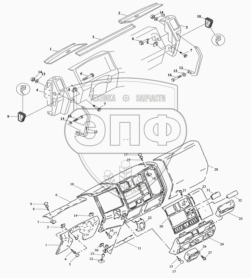 | 5 | 81.61701.5162 | Панель приборов правая в сборе | Нет на складе | |