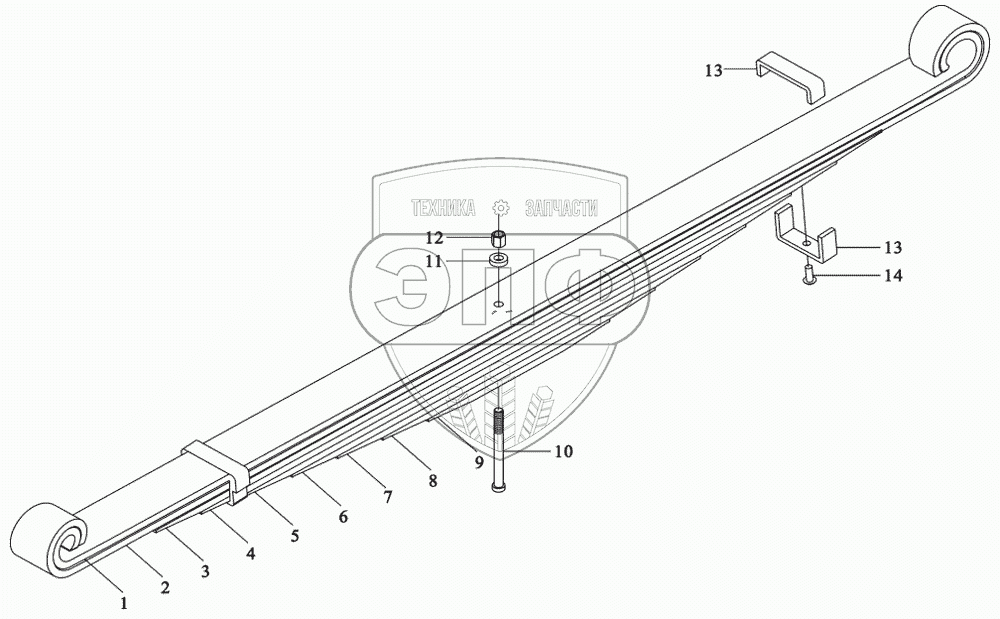 Каталог запасных частей к технике: Shaanxi DeLONG Е-3 (тягач). Передняя рессора