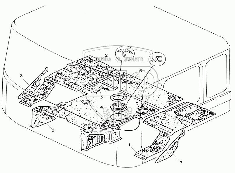 Каталог запасных частей к технике: Shaanxi DeLONG Е-3 (тягач). Половик