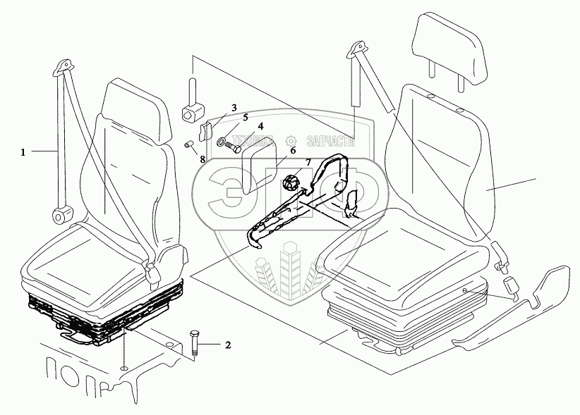 Каталог запасных частей к технике: Shaanxi DeLONG Е-3 (тягач). Сиденье правое