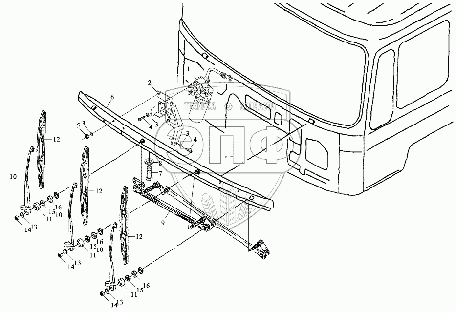 Каталог запасных частей к технике: Shaanxi DeLONG Е-3 (тягач). Стеклоочиститель