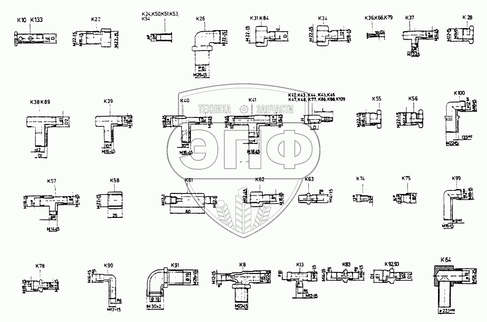 Каталог запасных частей к технике: Shaanxi DeLONG Е-3 (тягач). Трубные штуцеры