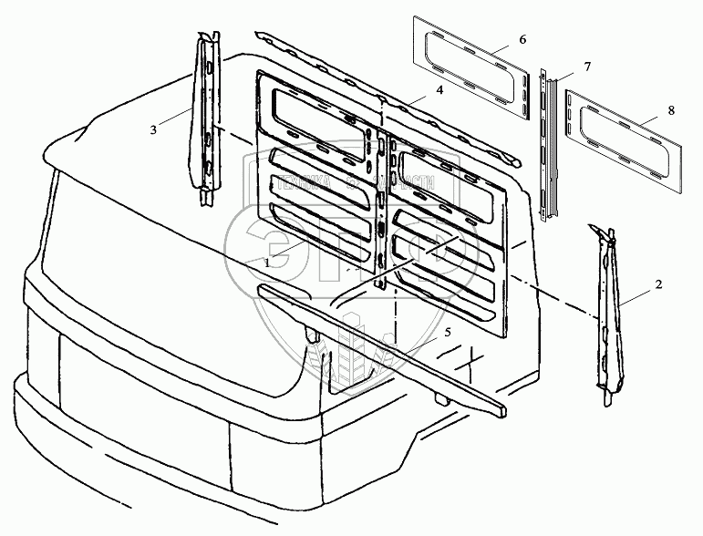 Каталог запасных частей к технике: Shaanxi DeLONG Е-3 (тягач). Задняя уплотнительная панель