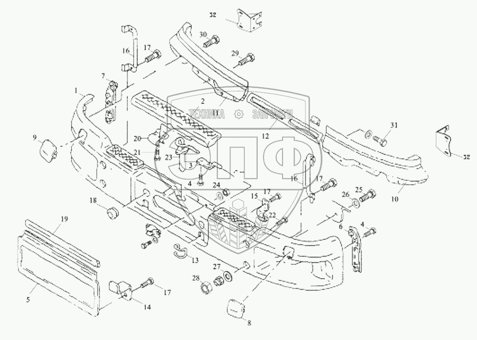 Каталог запасных частей к технике: Shaanxi Shacman SX3255DR385. BUMPER AND FRONT BRACKET
