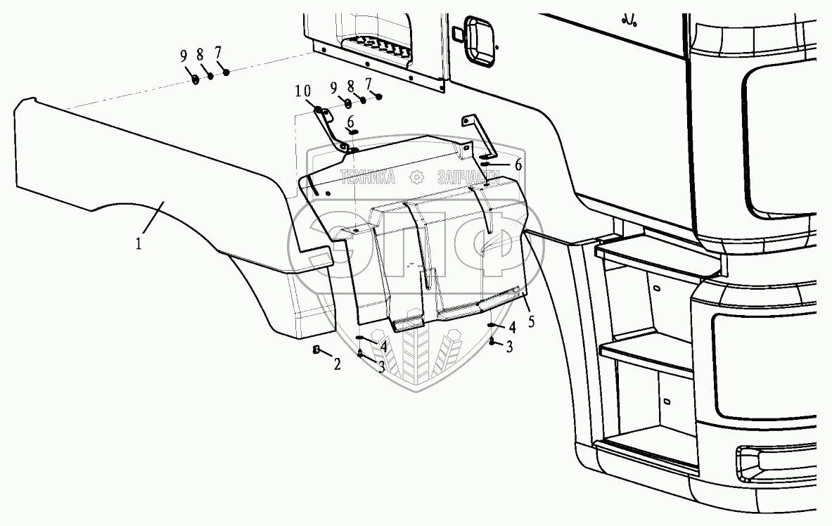 Каталог запасных частей к технике: Shaanxi Shacman SX3255DR385. RIGHT FENDER