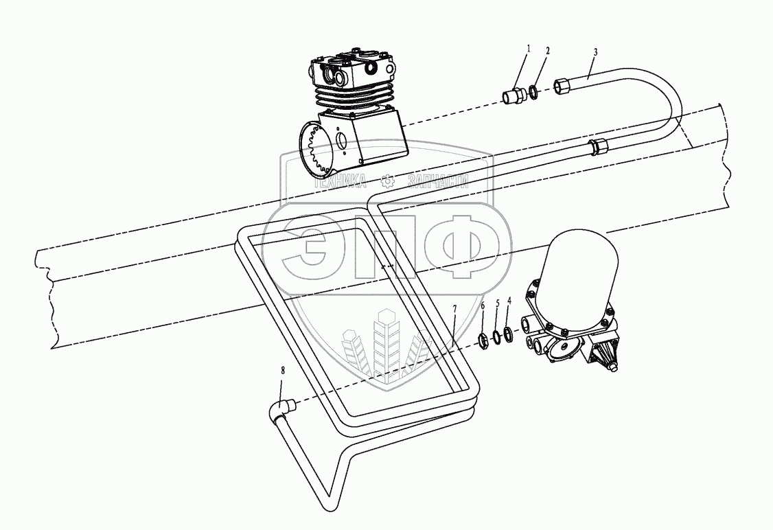 Каталог запасных частей к технике: Shaanxi Shacman SX3256DT384. AIR COMPESSOR OUTER LINE