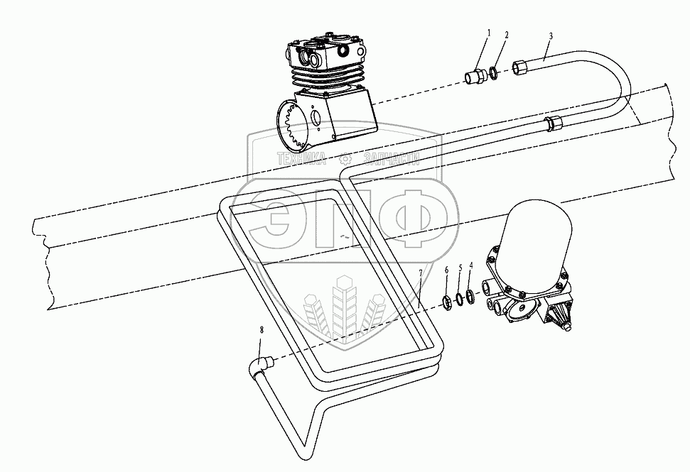 Каталог запасных частей к технике: Shaanxi Shacman SX3316DT366. AIR COMPESSOR OUTER LINE