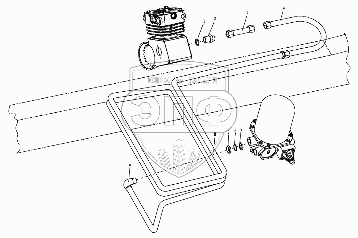 Каталог запасных частей к технике: Shaanxi Shacman SX3316DT366. AIR COMPESSOR OUTER LINE