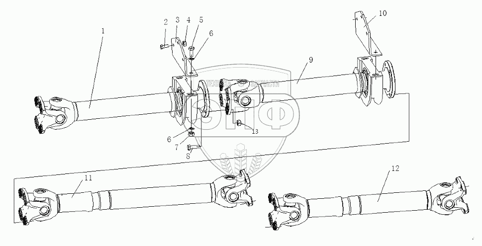 Каталог запасных частей к технике: Shaanxi Shacman SX3316DT366. PROPELLER SHAFT SYSTEM