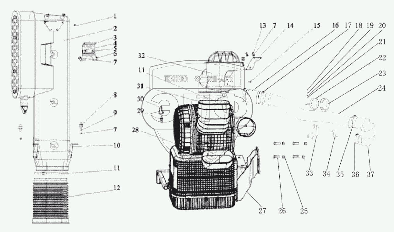 Каталог запасных частей к технике: Shaanxi Shacman SX3316DT426C. AIR CLEANING DEVICE