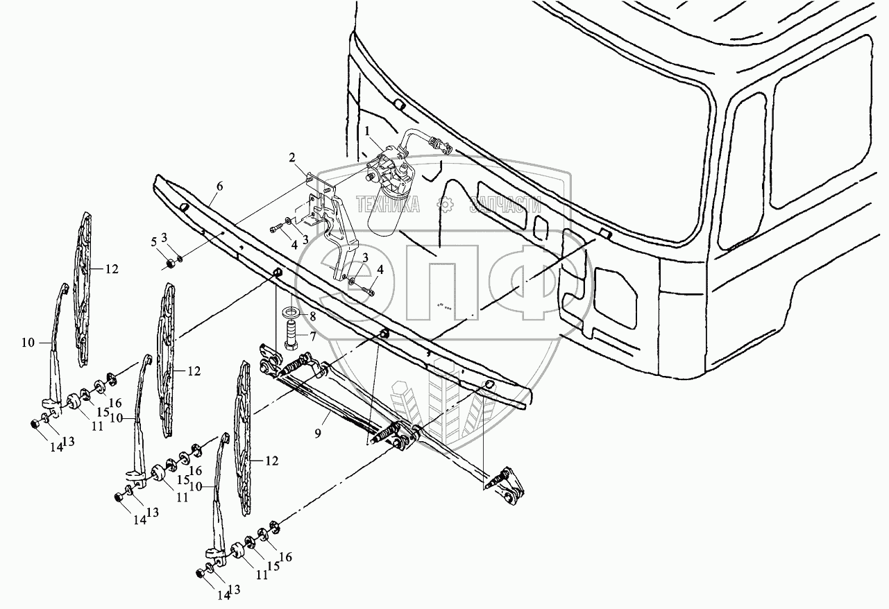 Каталог запасных частей к технике: Shaanxi Shacman SX3316DT426C. WIPER SYSTEM