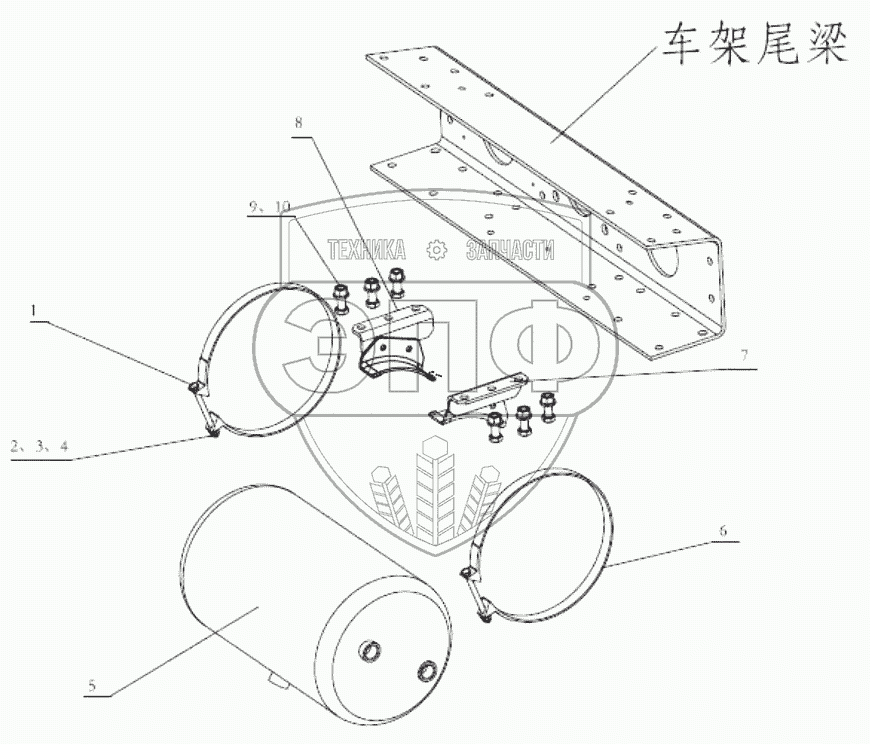 Каталог запасных частей к технике: Shaanxi Shacman SX3316HT406C. AIR TANK FIXING