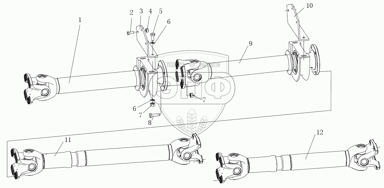 Каталог запасных частей к технике: Shaanxi Shacman SX3316HT406C. PROPELLER SHAFT
