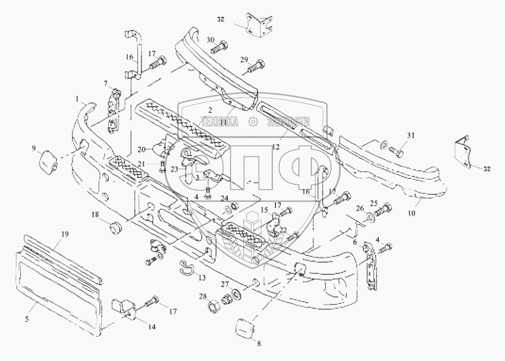 Каталог запасных частей к технике: Shaanxi Shacman SX4255DV385. BUMPER AND FRONT BRACKET